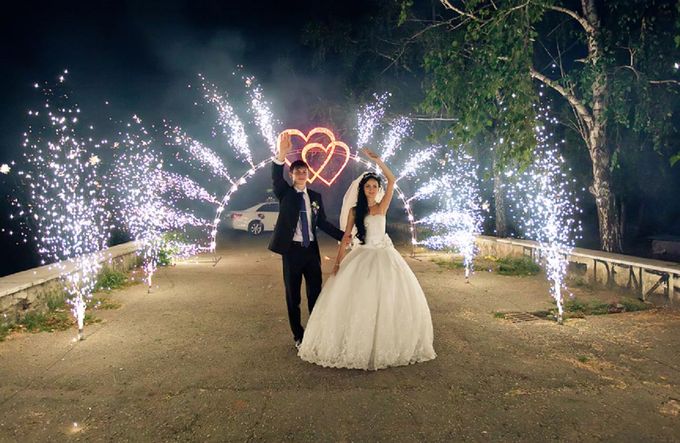 Имея такой опыт, мы с одинаковой ответственностью относимся к любому заказу, поступающему к нам, будь то запуск цветных дымов на гендер-пати или "дорожки" из пиротехнических фонтанов на свадьбе у частных клиентов, до выполнения масштабных городских или федеральных заказов на проведение пиро-музыкальных шоу.